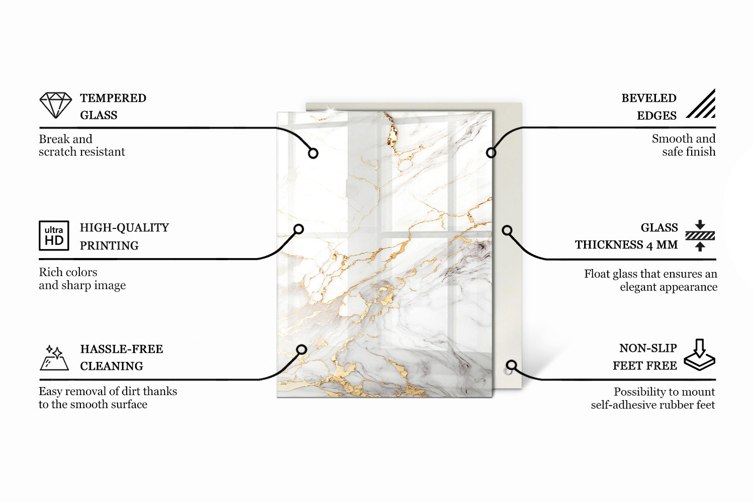 Introduce a modern vibe to your interior with a unique rectangular glass top featuring the Stylish wood motif print. It combines aesthetics with functionality, acting as a durable surface and a striking decorative element. The glass table top Stylish wood motif is an excellent choice for dining rooms, studios, or modern offices. Made of tempered glass, it stands out with its durability and intense print. It complements wood, metal, and ceramic elements beautifully. If you are looking for a table top that is both practical and stylish, this printed model is the perfect solution for any modern space.